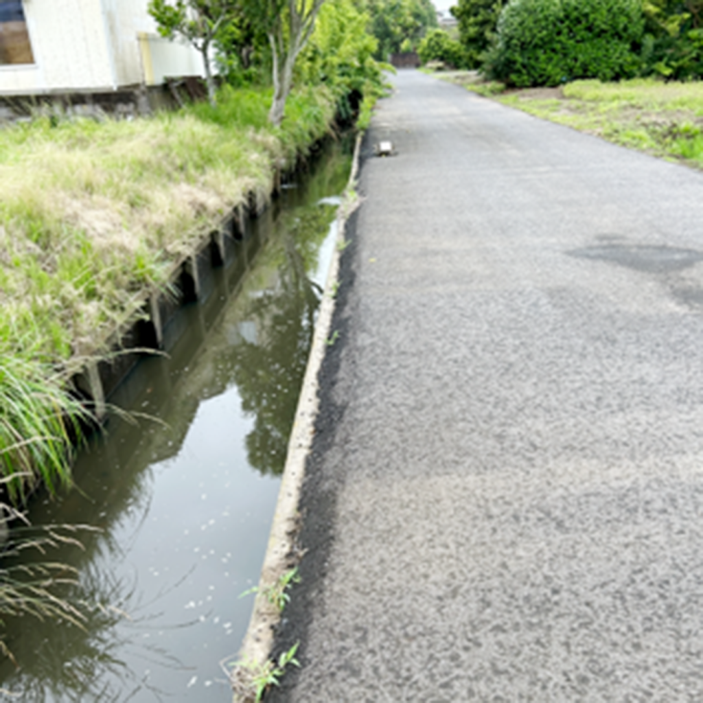 雨が降ると道路の陥没部に水が溜まり、車や歩行者は避けて歩かなければなりません。通学路として毎日利用している児童がいます。何十年にもわたって区から要望をあげていましたが、このたび事業化し、道路に隣接する住民を対象とした説明会を開催しました。昨年中に市職員による対象世帯への戸別訪問が完了し、税務調査も完了しました。いよいよ買収に入ります。